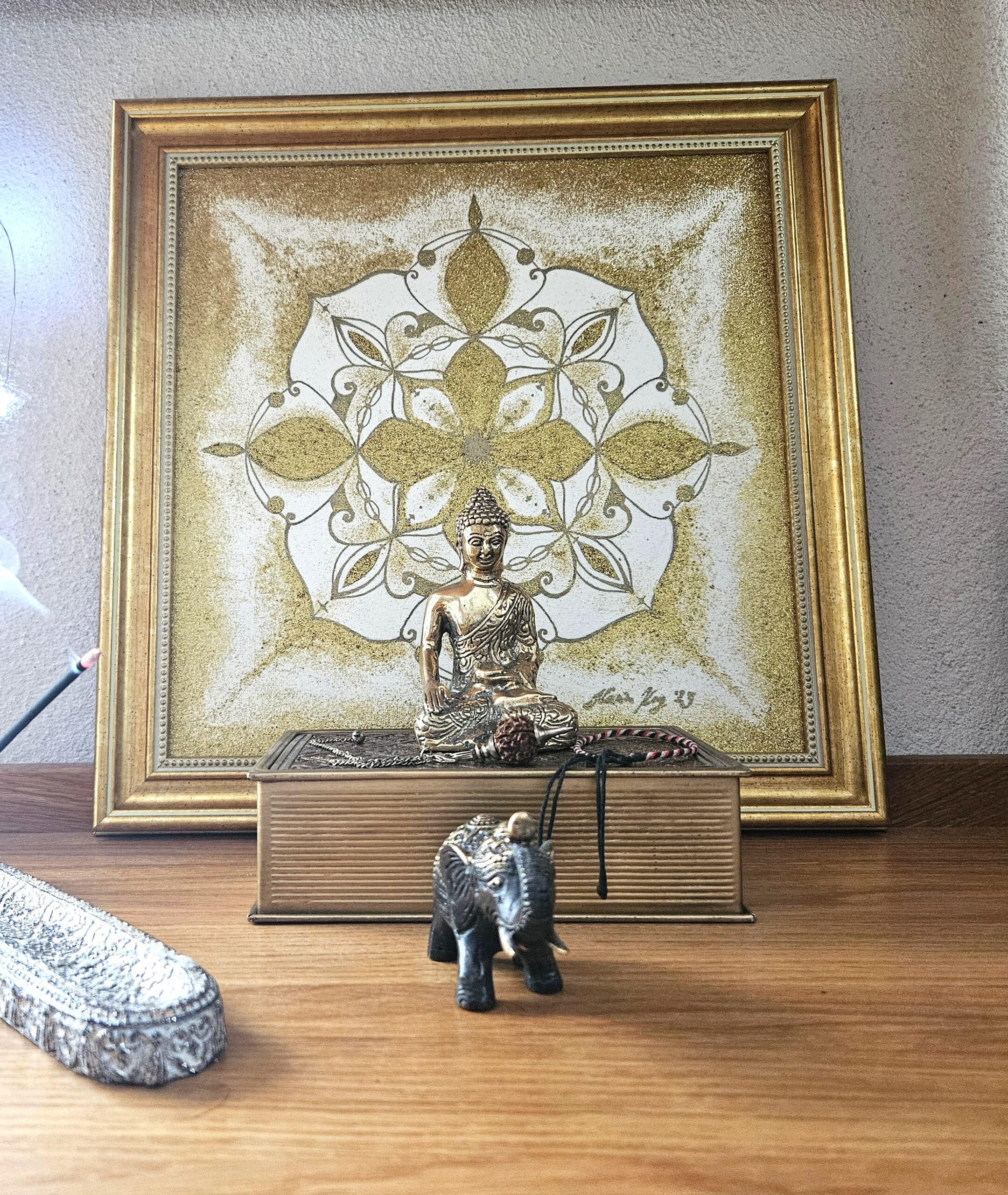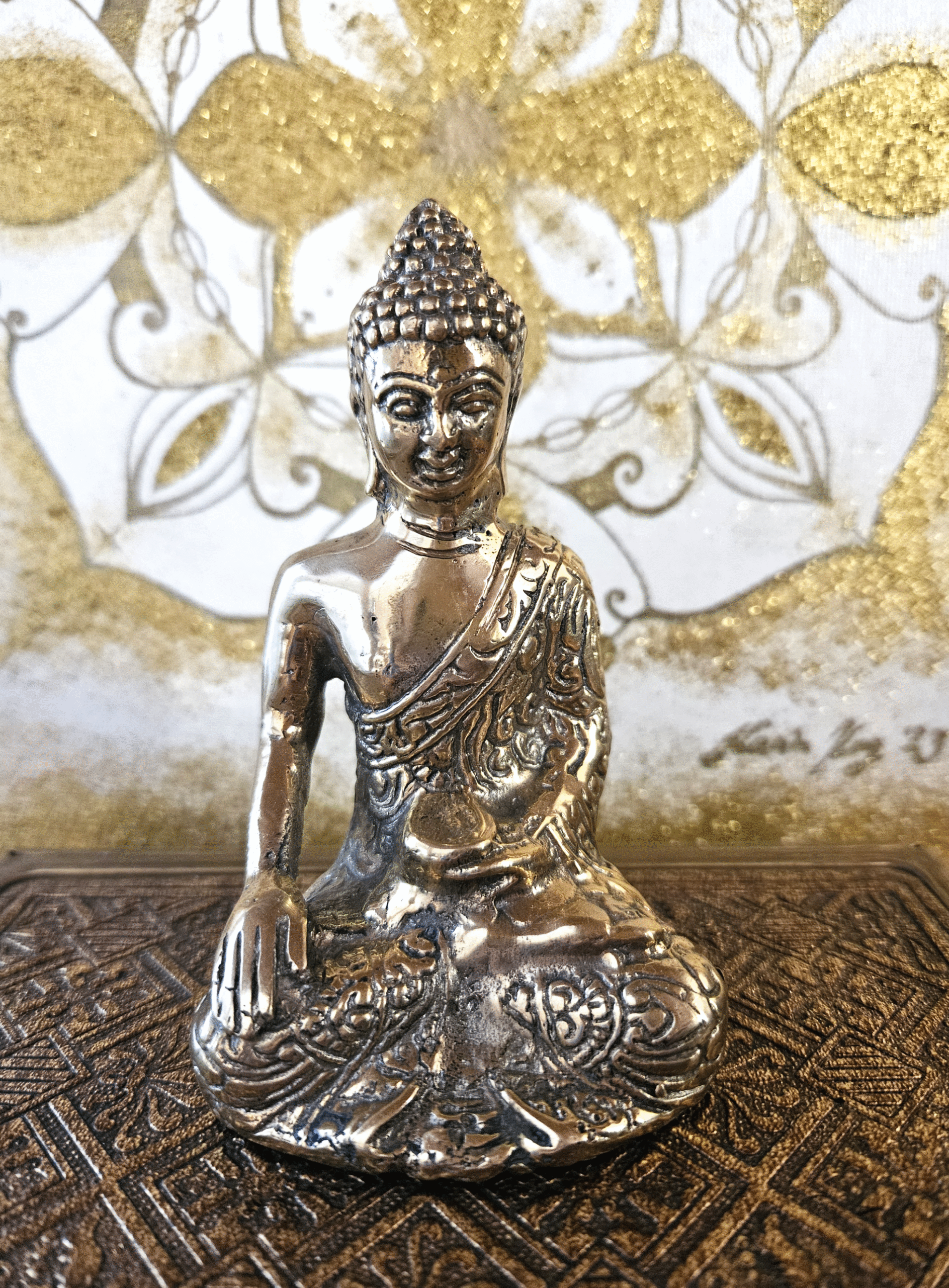 Metallist altarikaunistus, kuldne Buda. Kõrgus 10,5 cm. Päritolumaa Indoneesia, Bali.